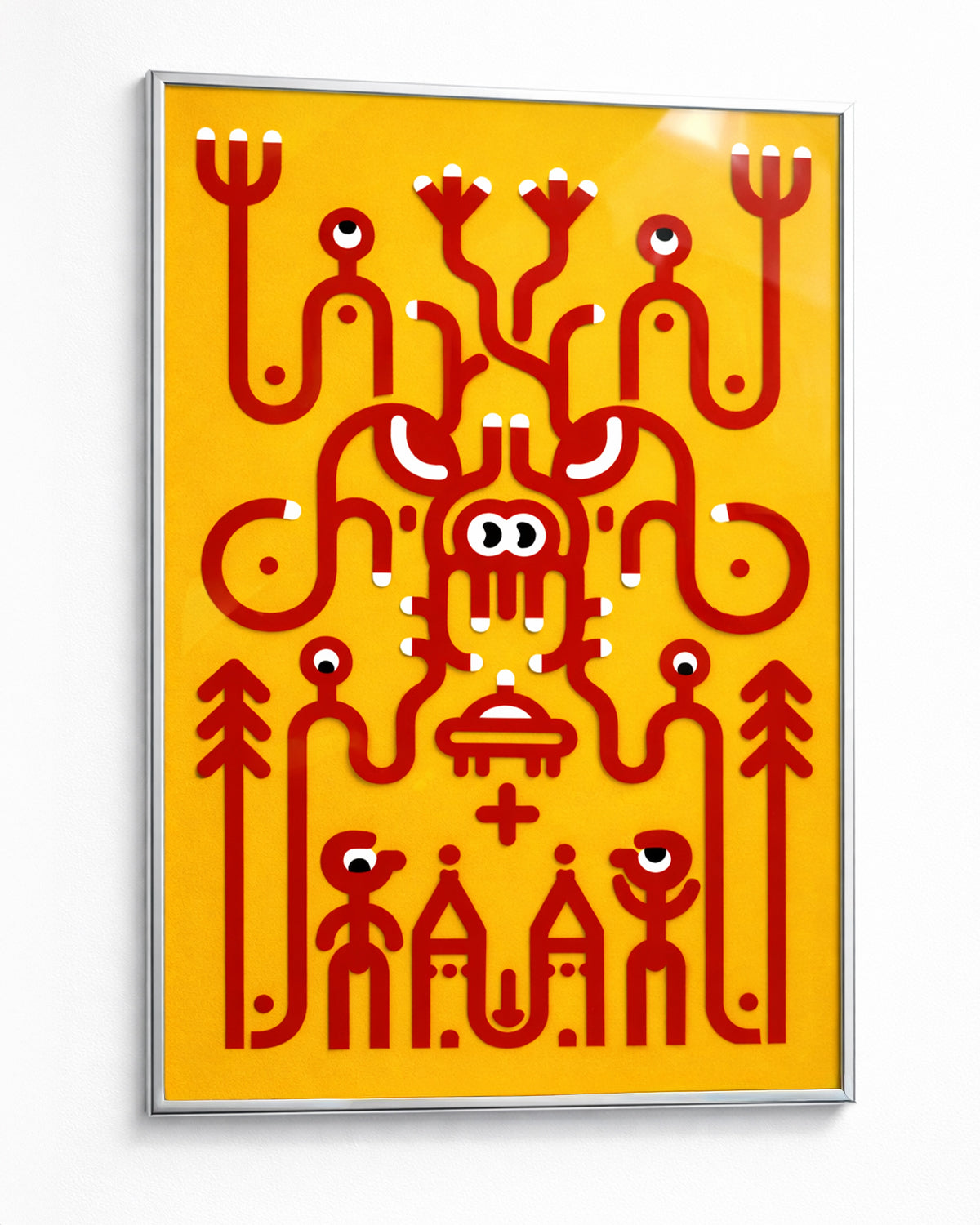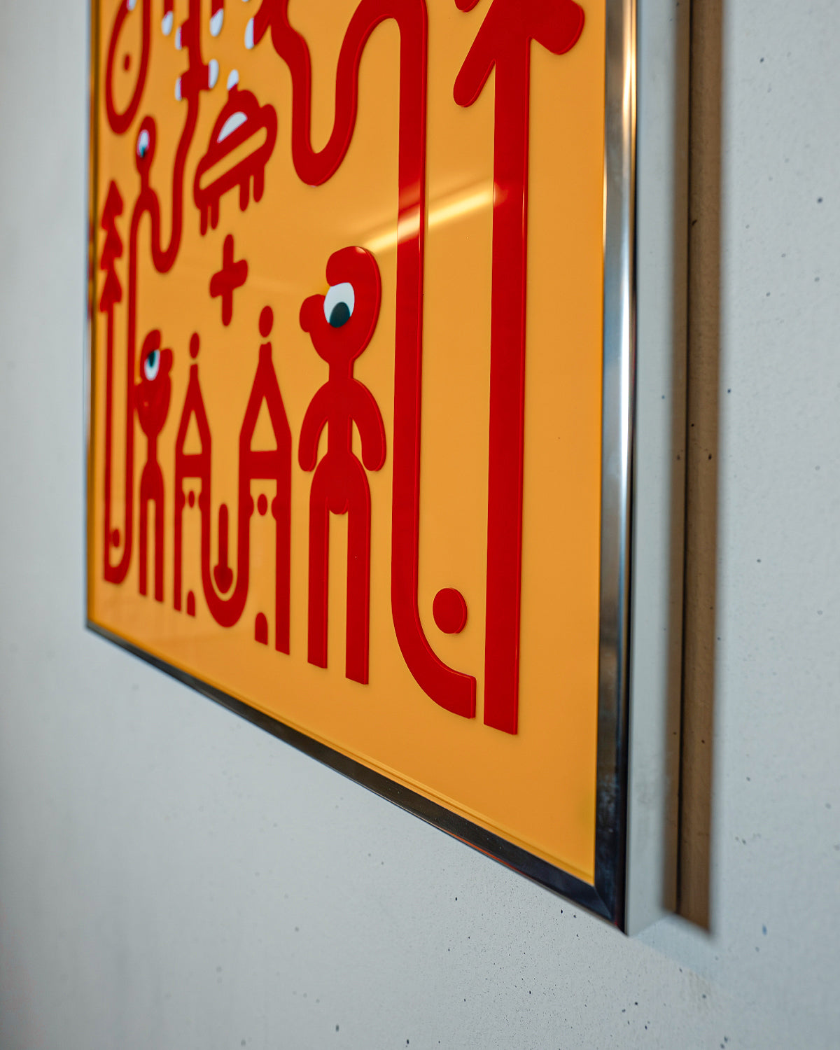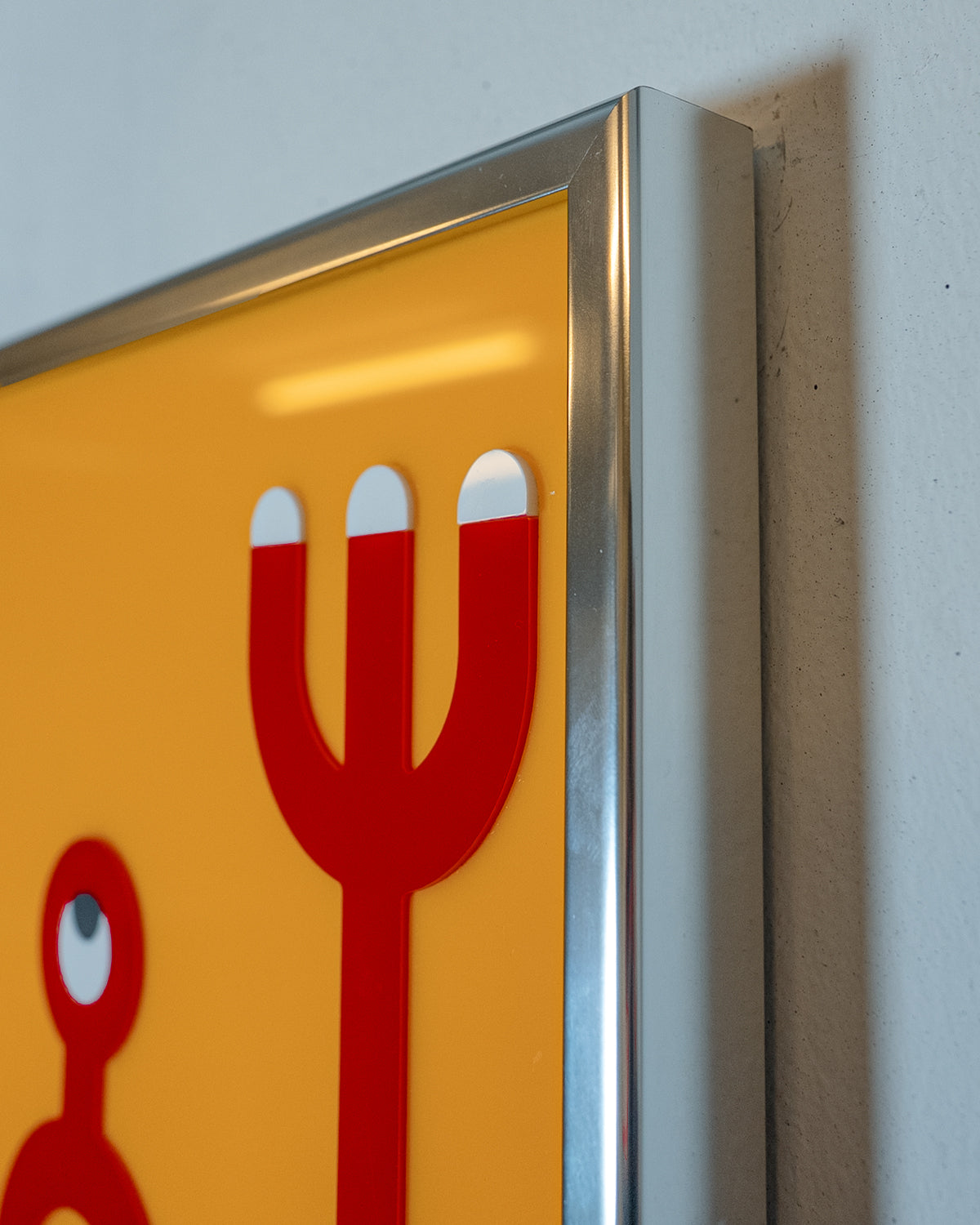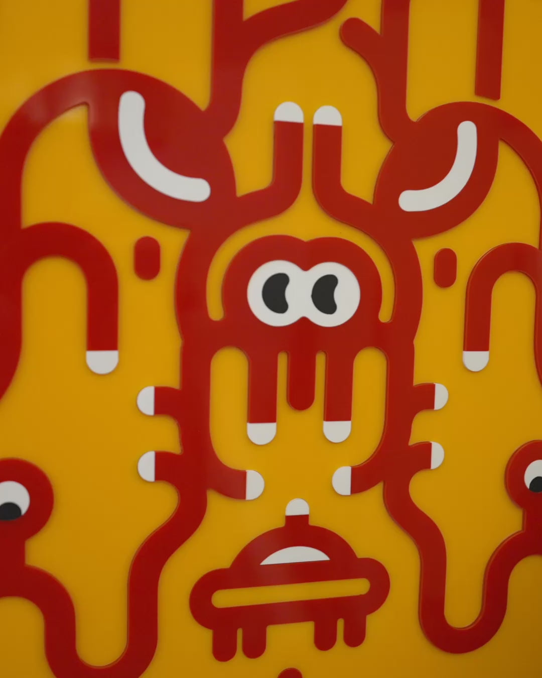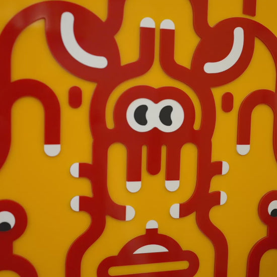 Complex acrylic-glass artwork made from over 200 individual pieces. The layered parts interact to create a subtle depth of about 1 mm, produced in four colors.