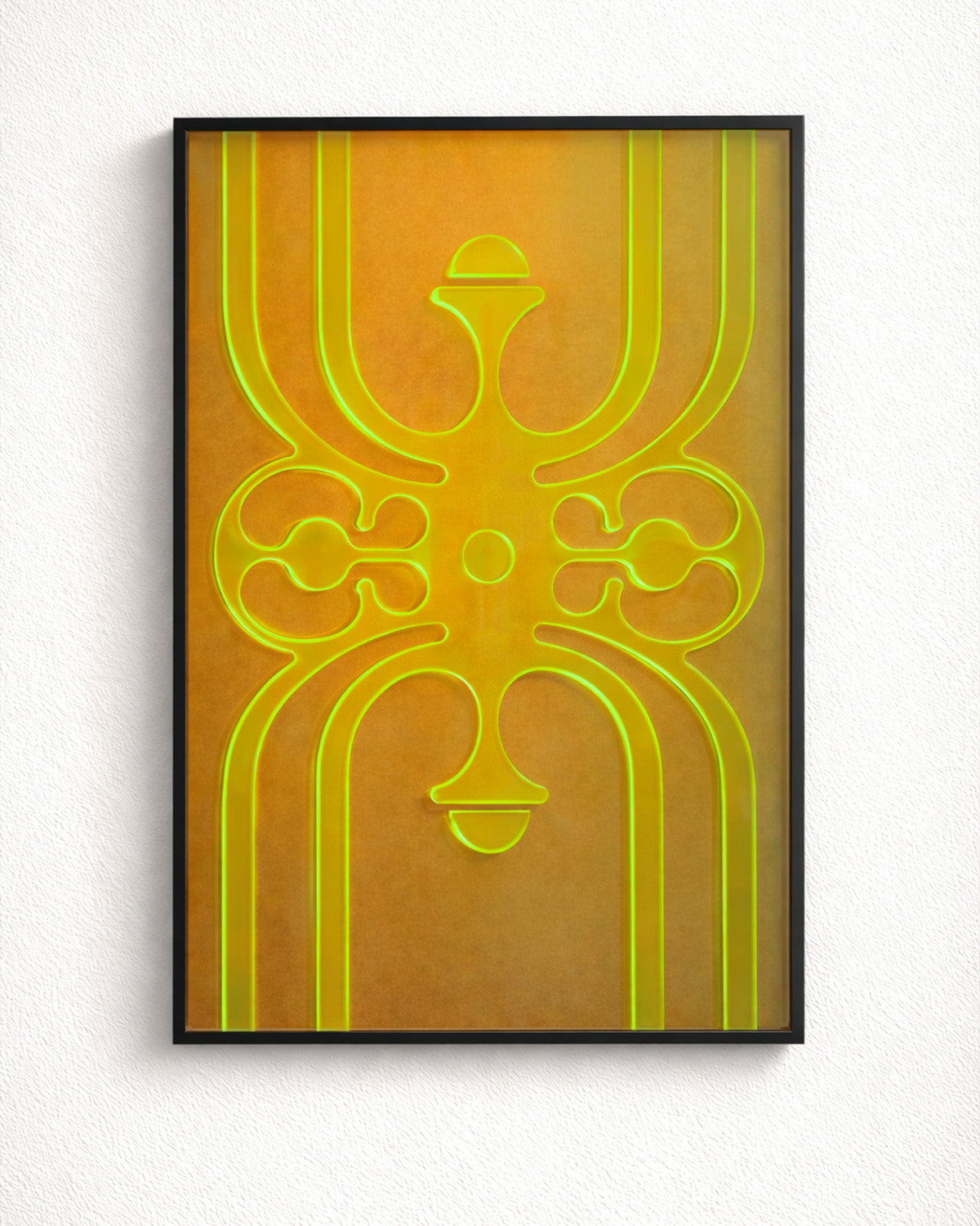 This artwork is made from four layered, laser-cut acrylic sheets with many different shades of color; the interlocking positive/negative elements are mounted and foil-bonded to a premium magnetic frame for excellent stability and vibration resistance—ideal for safe shipping and long-term display. Colors are shown most accurately in the first photo. Artwork size: 60x90x3cm. We cover shipping costs.